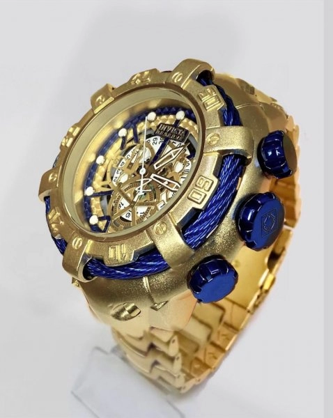 Relógio Masculino Invicta Thunderbolt Skeleton Linha Gold One Dourado / Azul Pulseira de AçoAvaliar