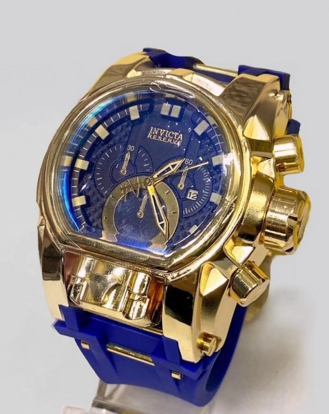 Marca: Invicta Qualidade: Linha Gold Gênero: Masculino Material da caixa: Aço Material da Pulseira: Borracha Mecanismo: Maquina Pulseira: Ajustável Nível de Resistência à Água: Resistente a água Calendário: Sim Cronômetro: não Alarme: não Movimento: Bateria Garantia: 30 dias