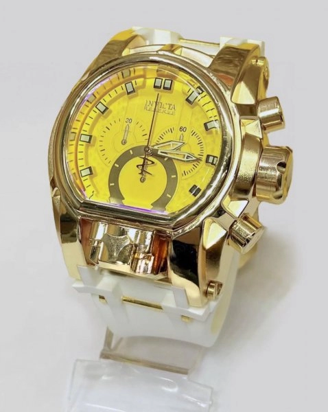 Marca: Invicta Qualidade: Linha Gold Gênero: Masculino Material da caixa: Aço Material da Pulseira: Borracha Mecanismo: Maquina Pulseira: Ajustável Nível de Resistência à Água: Resistente a água Calendário: Sim Cronômetro: não Alarme: não Movimento: Bateria Garantia: 30 dias