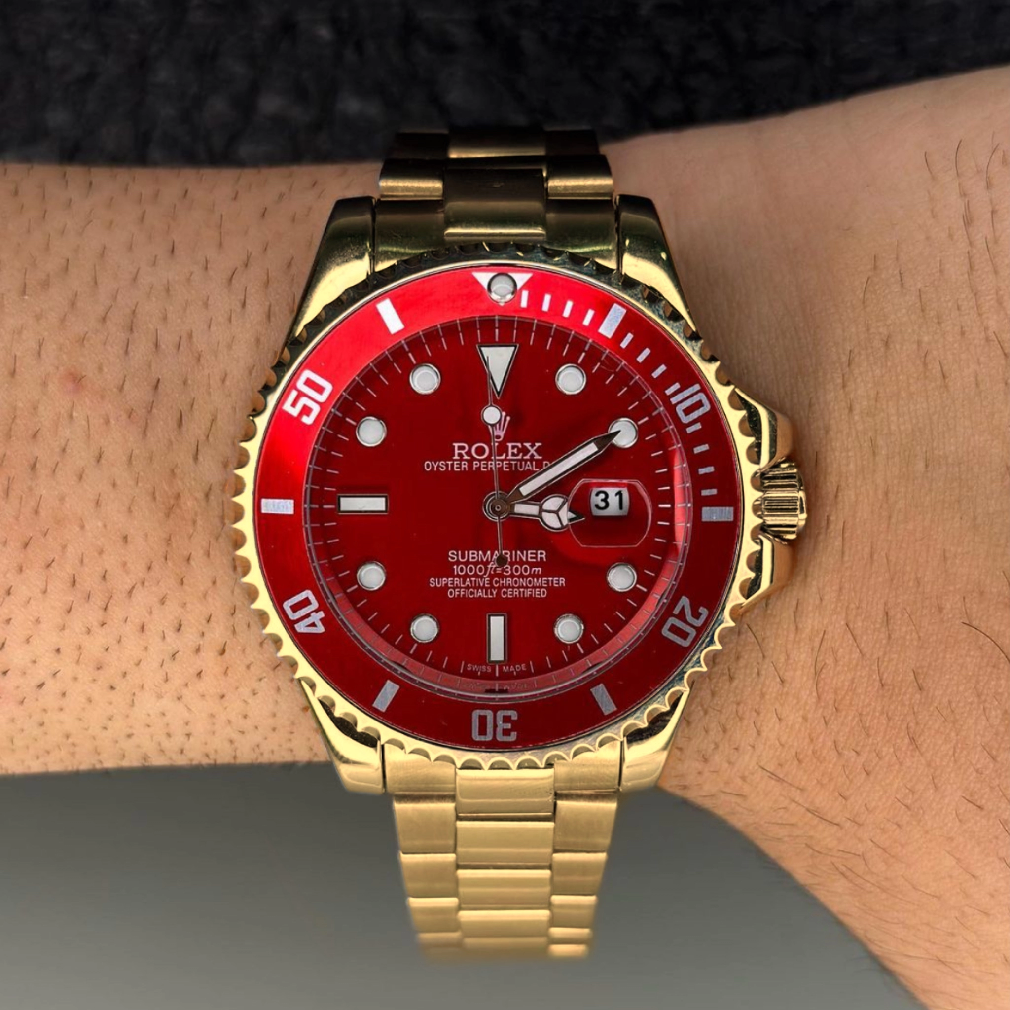 Relógio masculino Rolex Submariner Dourado Vermelho linha Gold c/ caixa premium Avaliar